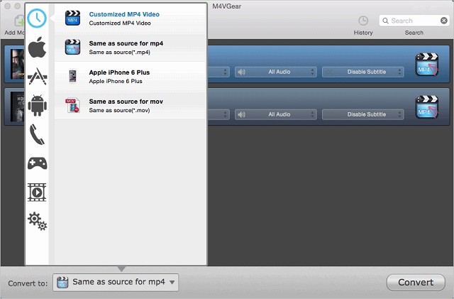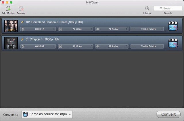 M4VGear Converter for Mac is one of the best Apple Music DRM removal tools for Mac software programs that can remove DRM protection and convert iTunes videos to non-DRM videos in formats like MP4, MOV, M4V, MPG, AVI, and more. There are also some optimized presets, which allow you to convert the iTunes resources to devices like iPhone 6, Apple TV, iPad, Samsung Galaxy, and more. The removal would be lossless if you choose the output video format as MP4 or M4V. Same with DVDFab Mac DRM Removal for Apple, M4VGear DRM remover Mac program supports both iTunes purchases and rentals, but it cannot deal with the FairPlay DRM on iTunes Music.