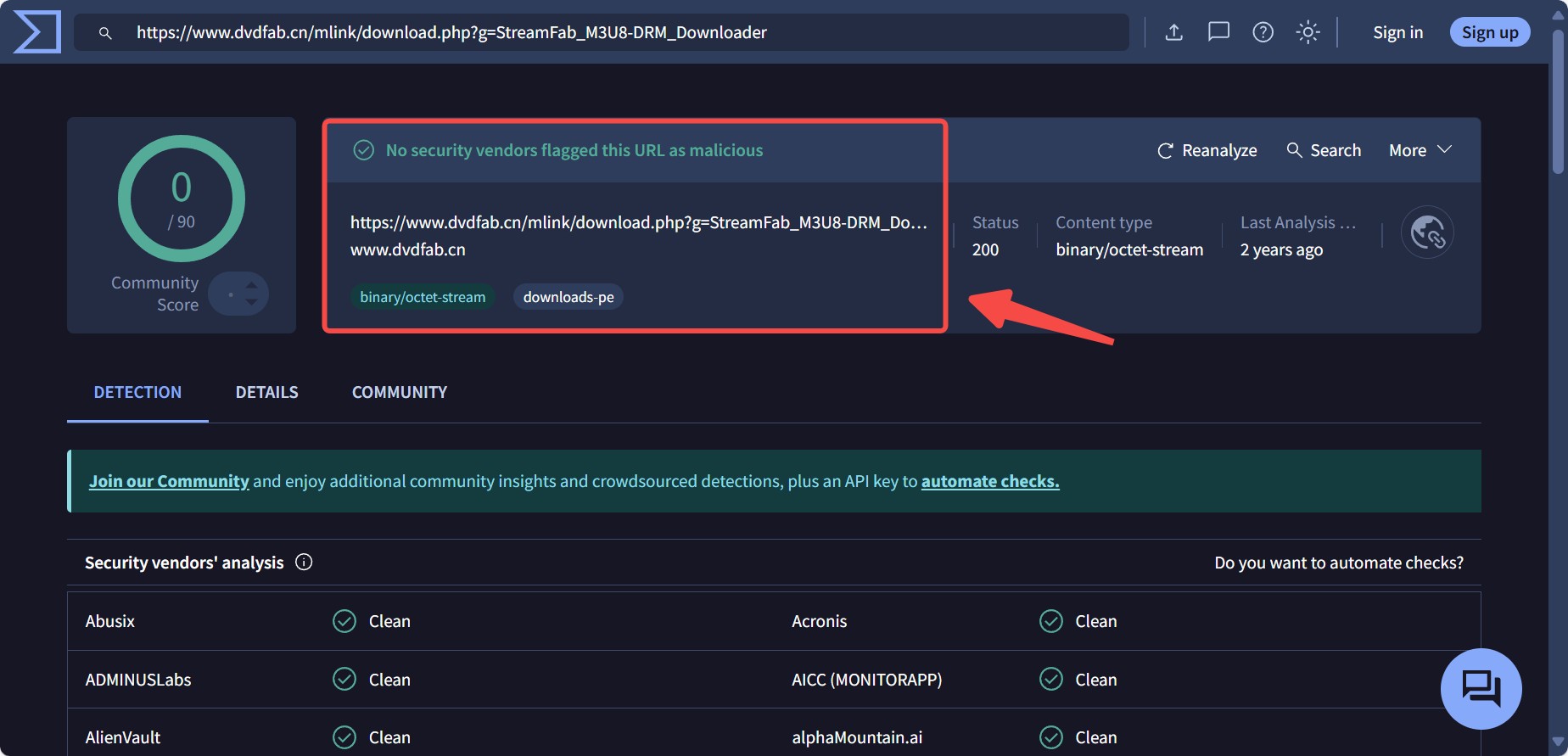 I performed a VirusTotal scan on the StreamFab installer — no issues detected so far. That said, because LAXD content might be under protection or restriction, using altered or non-official versions could cause failures or even security risks. Always stick with the official StreamFab build.