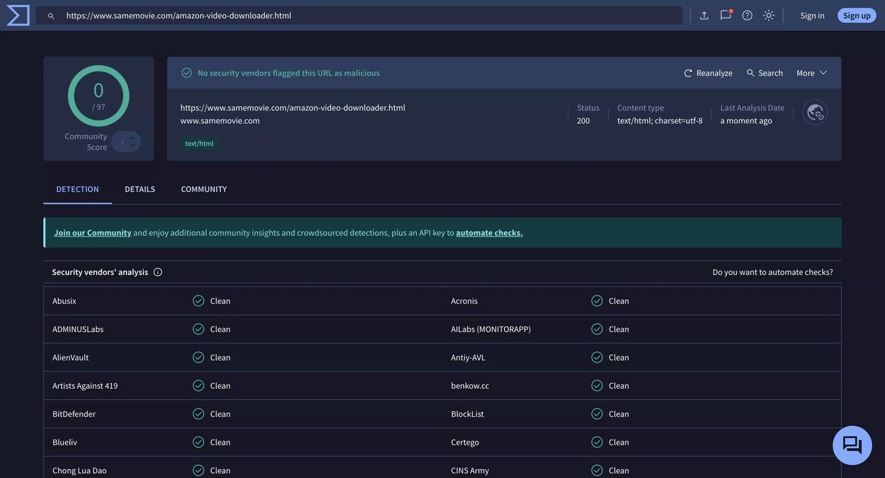 I scanned the installation packages of all four methods with VirusTotal, and none of them showed any malicious behavior. I also didn’t encounter unwanted plugins or pop-up ads during use, so I’m confident in their overall safety. Below is one sample scan result for reference: