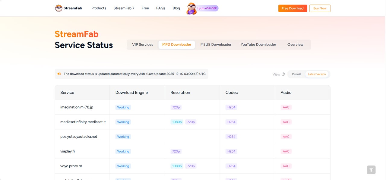 - If you want to check StreamFab DRM MPD Downloader work status, please visit the StreamFab download status page, where you can find the support sites, resolutions, audio, etc.