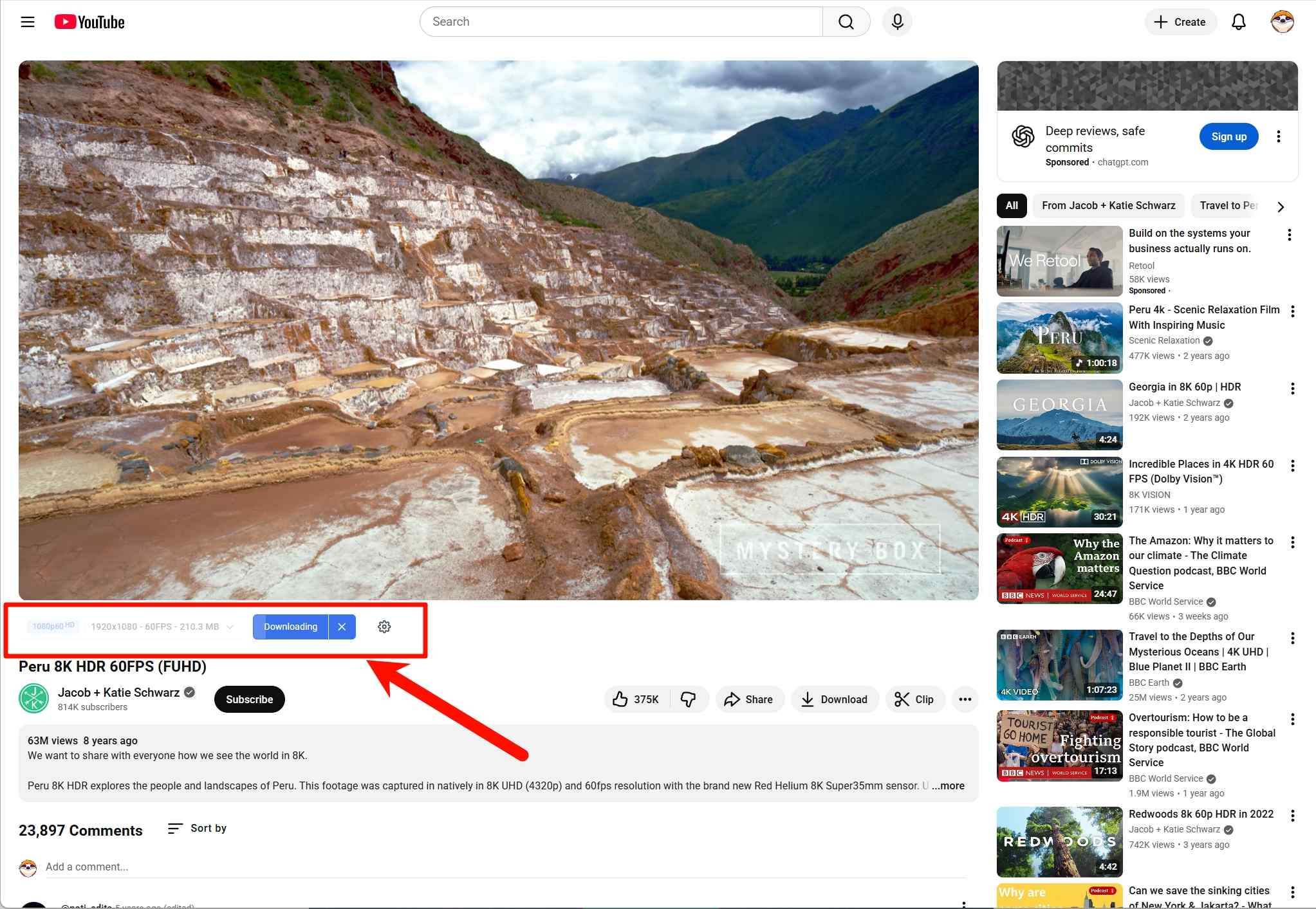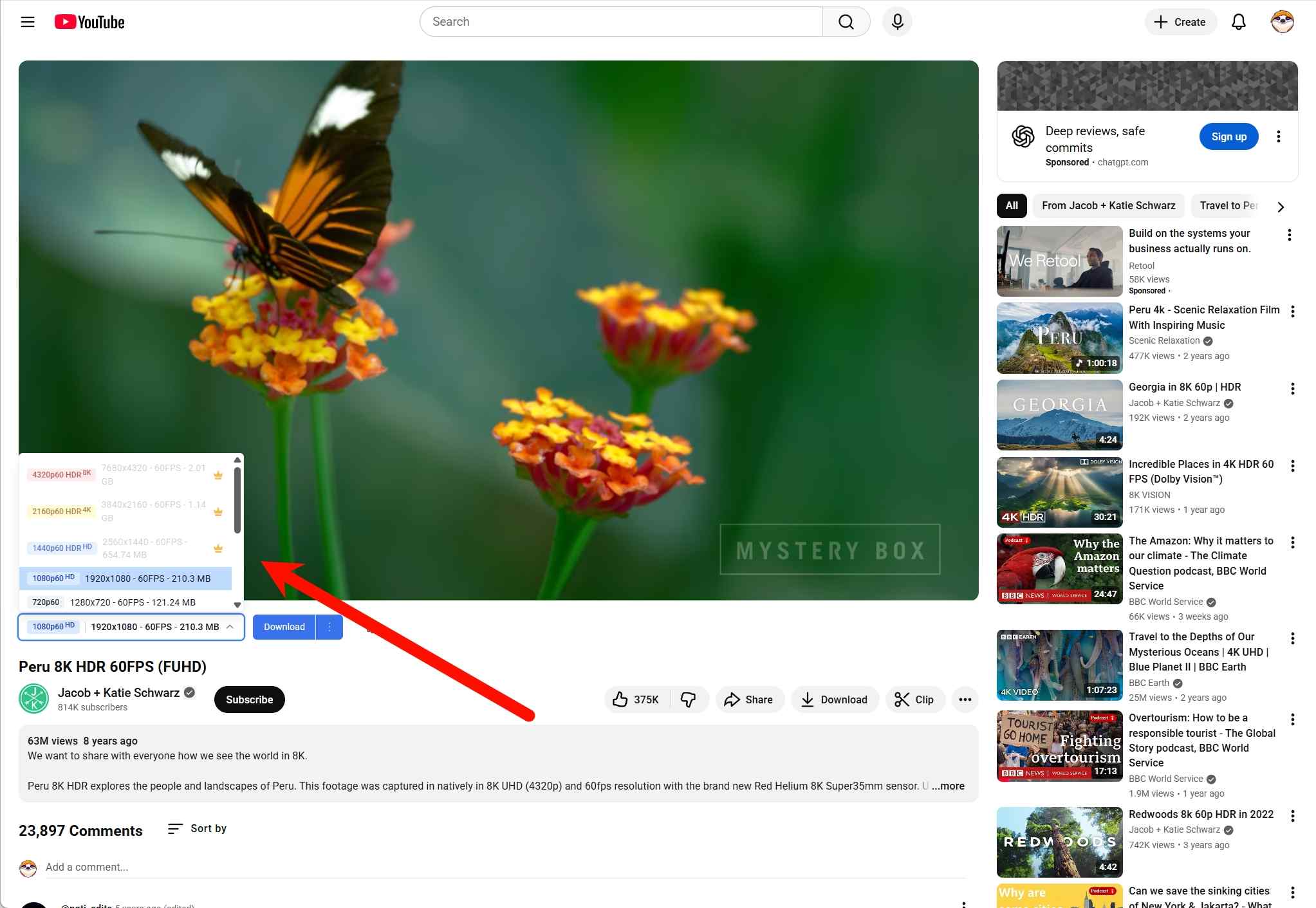 Open YouTube and play the video or Shorts you want to download. Click the download button on the page and select the resolution (such as 1080p/4K) or MP3.