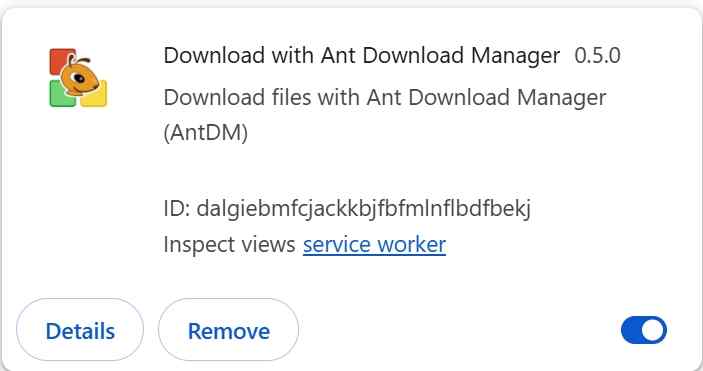 Still, confirm that the "Download with Ant Download Manager" extension is enabled.
